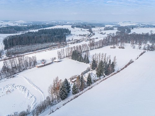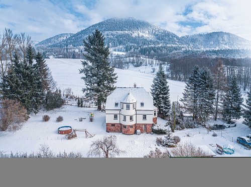 Jedná se o zděnou stavbu se dvěma nadzemními podlažími a sklepem (68,7 m²). Celková užitná plocha domu činí 338 m². Dům se nachází na pozemku o celkové výměře 2 307 m², který nabízí absolutní soukromí, klid a dostatek prostoru. Zahrada i dům jsou celodenně slunné a obklopené přírodou.