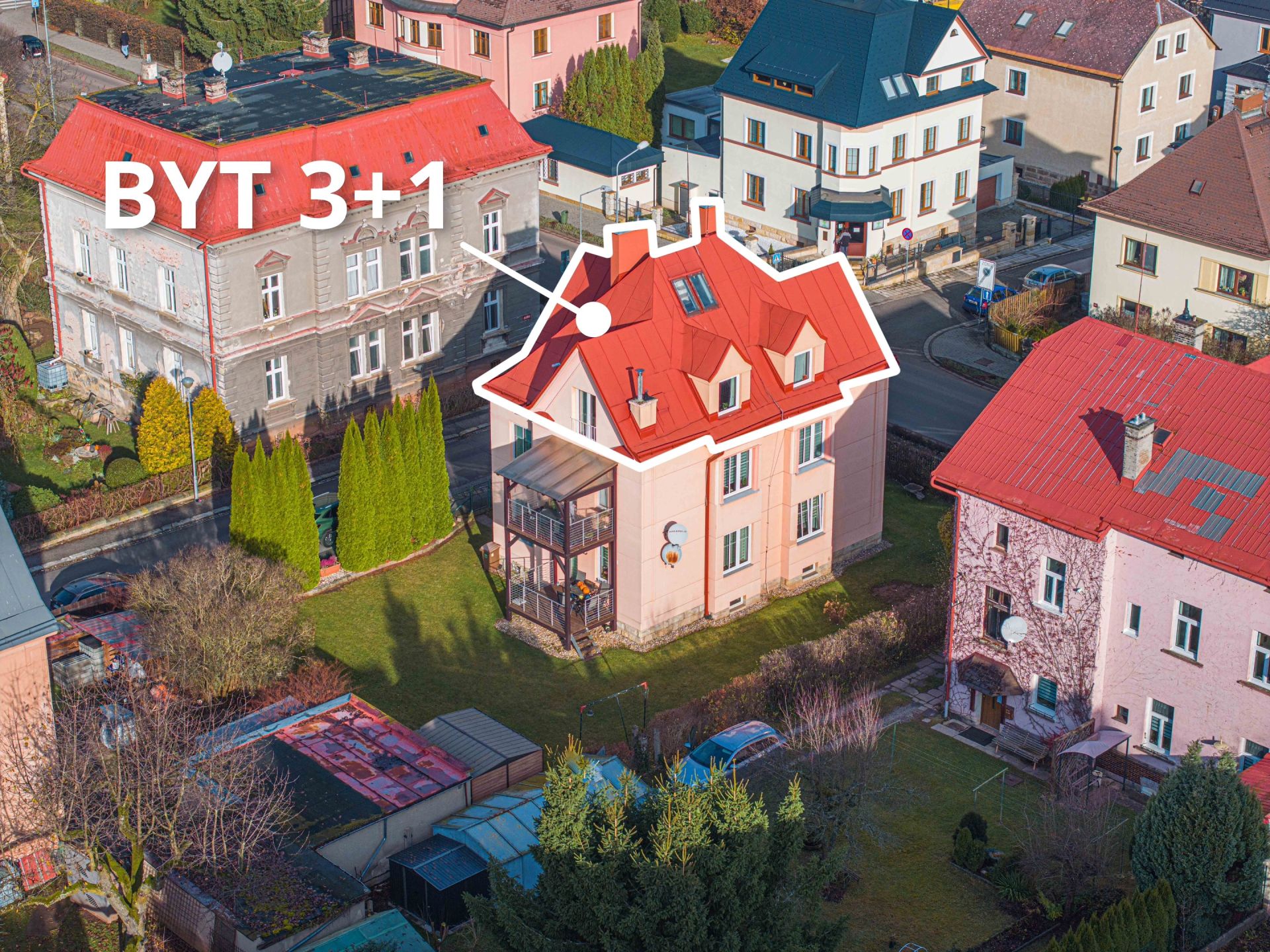Velkou výhodou je společná zahrada za domem, kterou lze využívat k odpočinku, posezení nebo dalším aktivitám. Nemovitost se nachází v blízkosti centra Trutnova a v pěší vzdálenosti najdete kompletní občanskou vybavenost – školu, školku, obchody s potravinami, MHD, polikliniku a další služby.