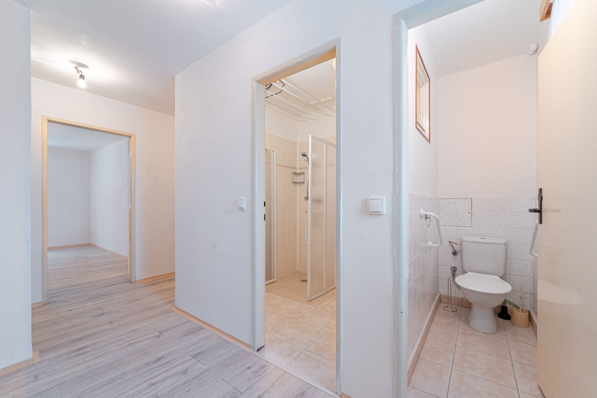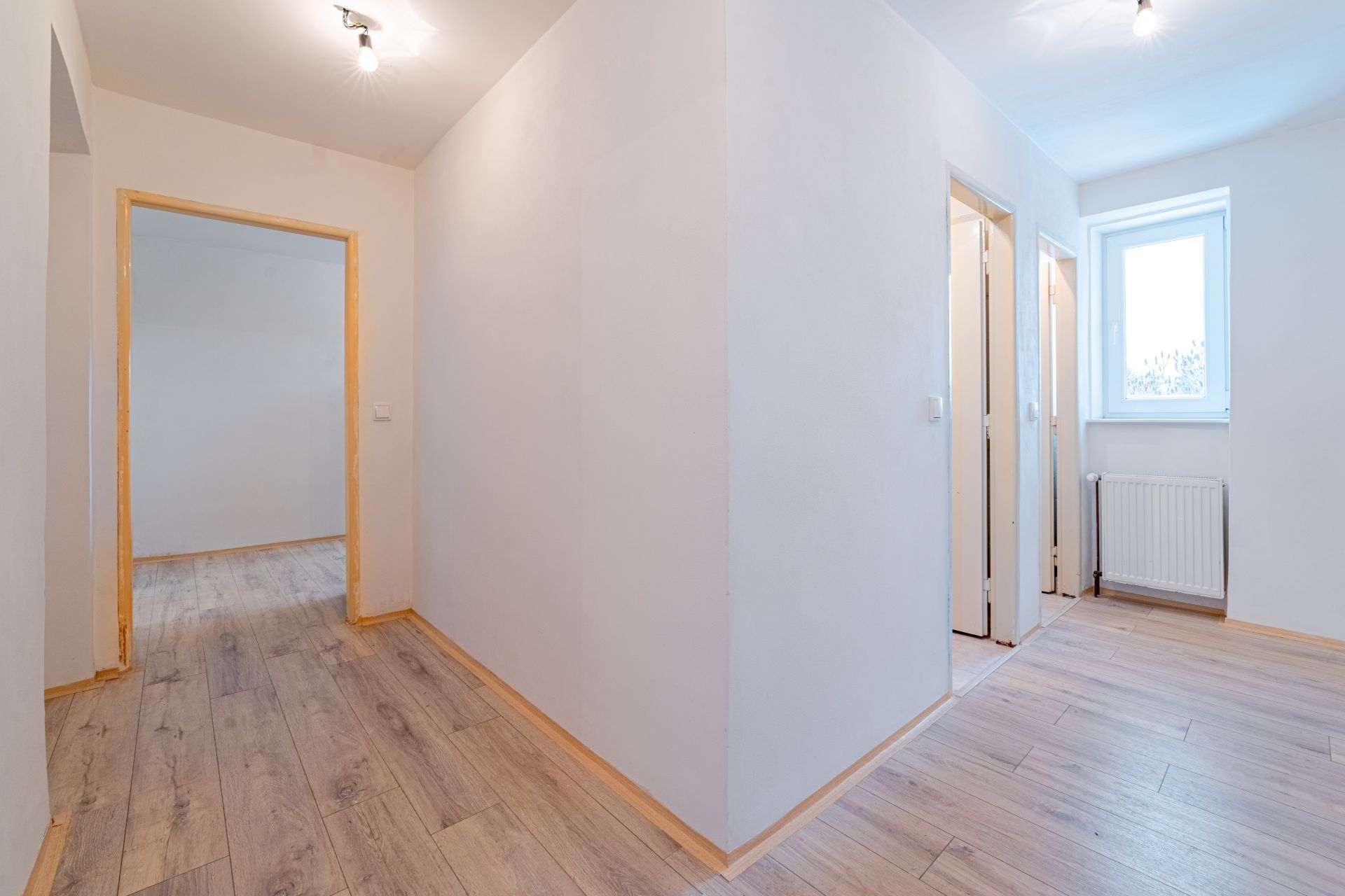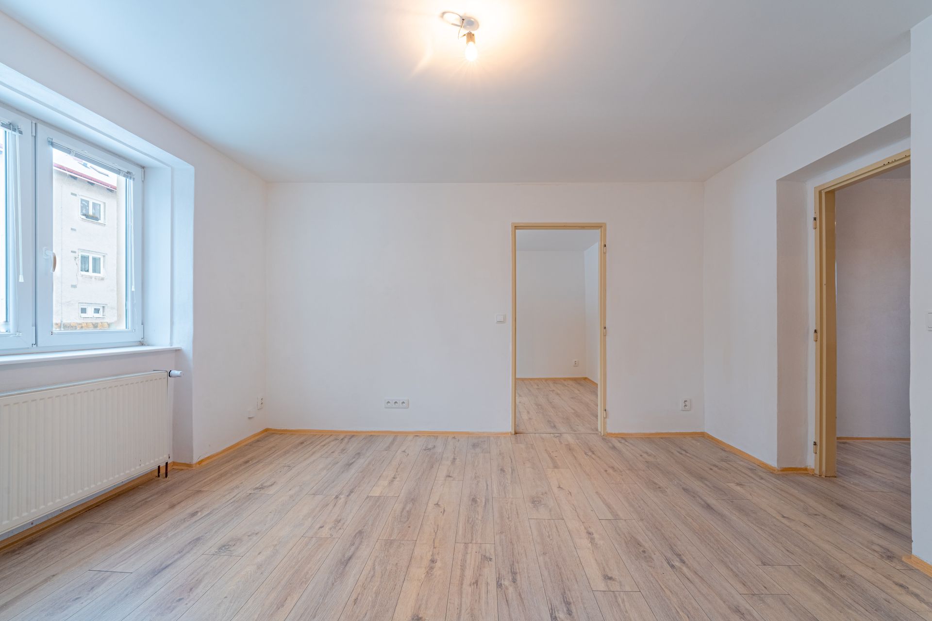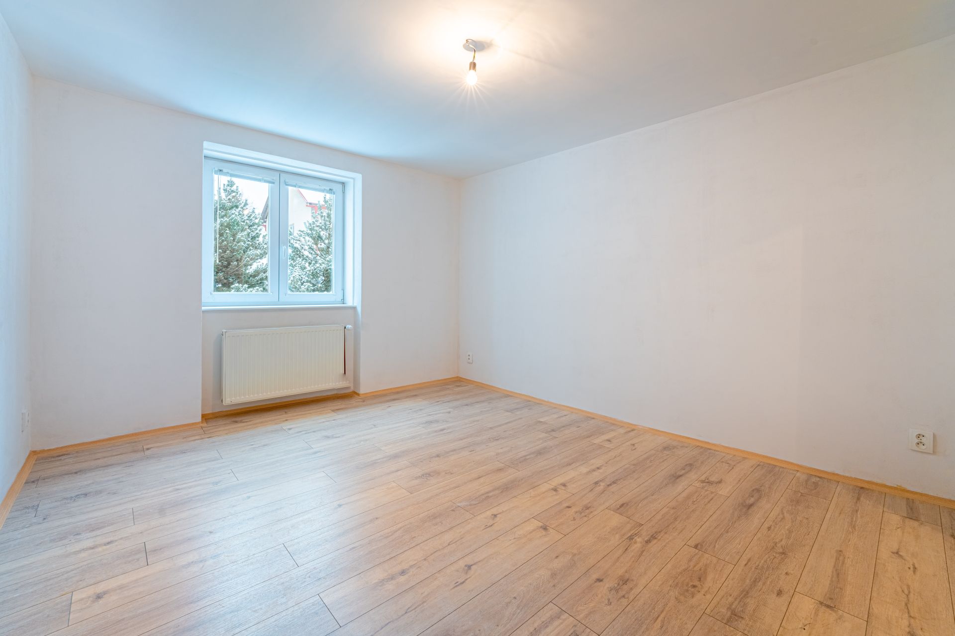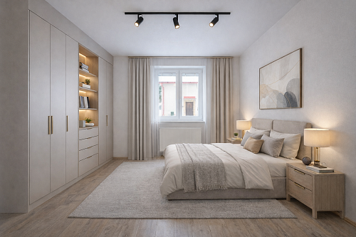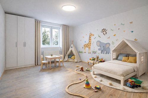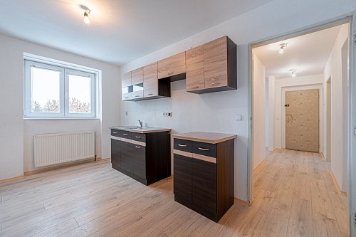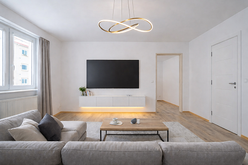 Dispozice: vstupní chodba, kuchyně, obývací pokoj, ložnice, dětský pokoj, koupelna a samostatné WC. K bytu náleží tři sklepní prostory o celkové výměře 30 m², které poskytují dostatek úložného prostoru nebo hobby dílny.
