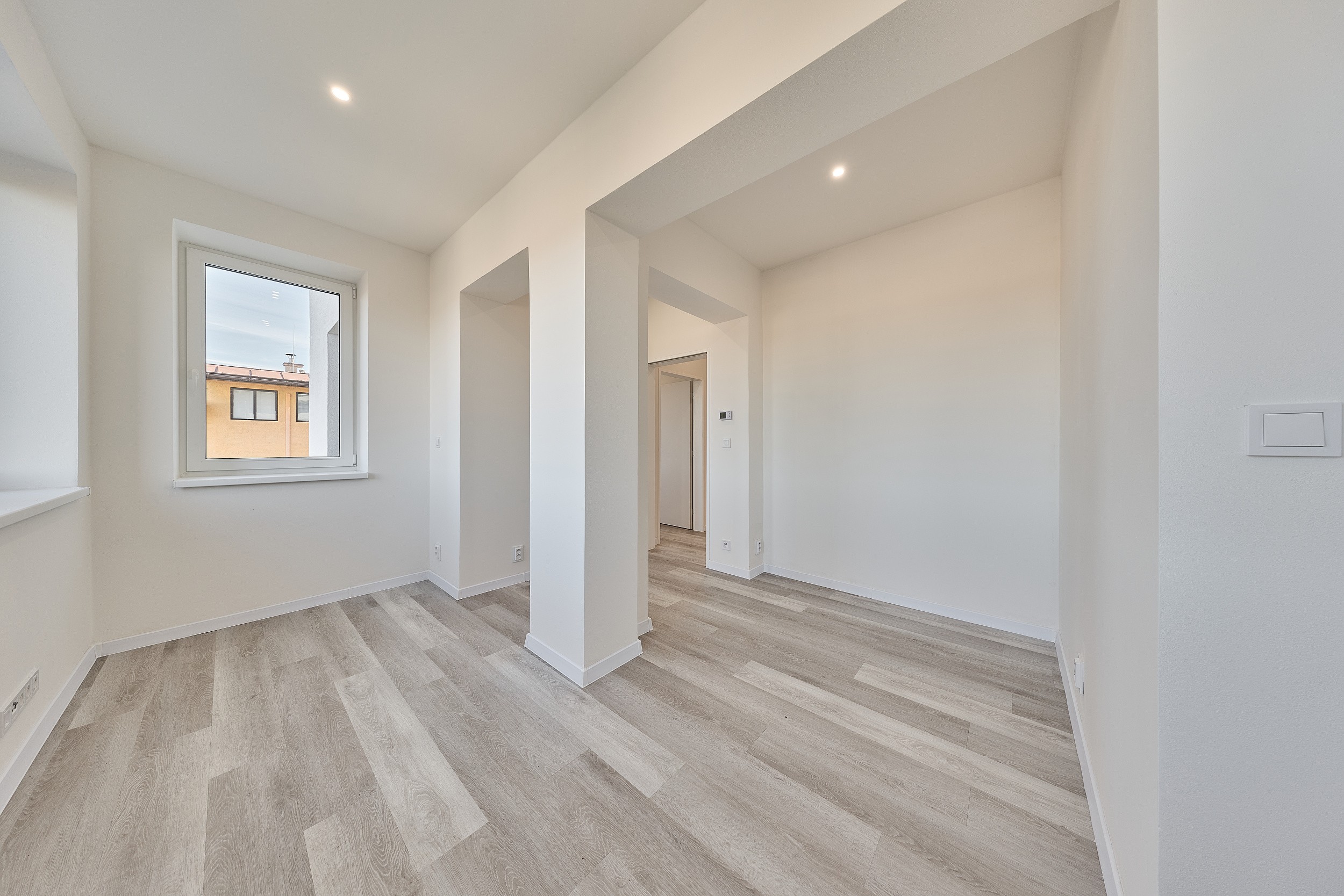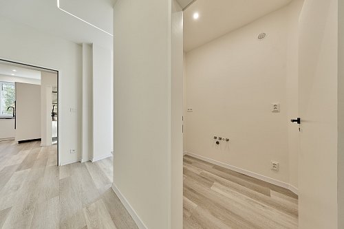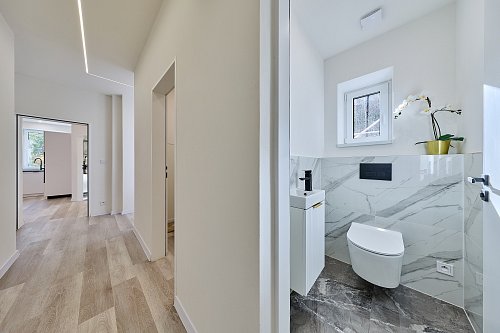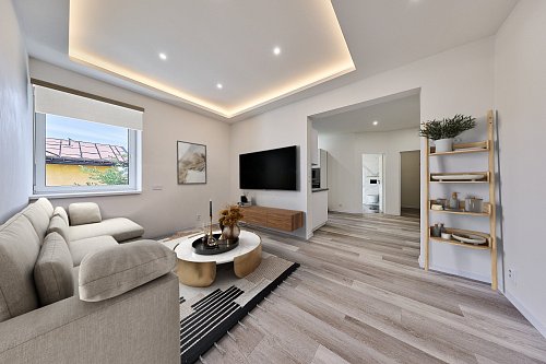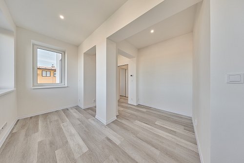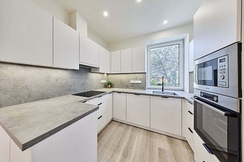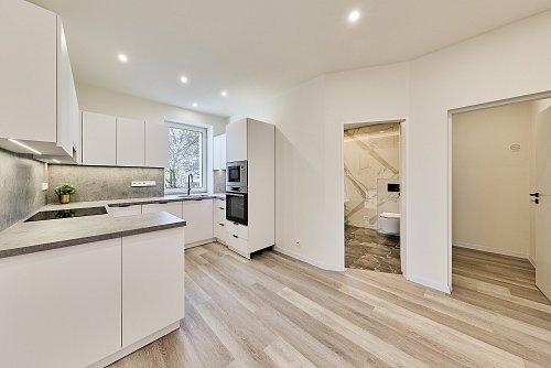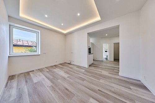 Byt prošel kompletní rekonstrukcí - nové rozvody elektřiny, vody a odpady, nová kuchyňská linka se spotřebiči, modernizována koupelna, plastová okna, nové stropy a omítky, nové vinylové podlahy. Dům je nově zateplený. Vytápění je řešeno podlahovým topením napojeným na horkovod. Ohřev vody el. bojler. PENB zatím třídy E – probíhá finalizace rekonstrukce (zateplení fasády, střechy a nová okna). Po dokončení bude nový energetický štítek s nižší energetickou třídou.