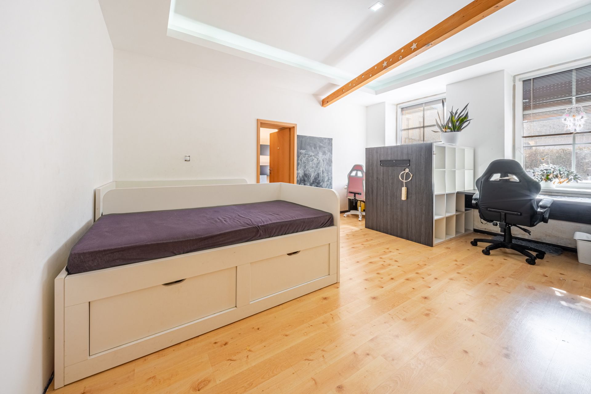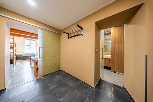 Byt o dispozici 4+1 s podlahovou plochou 117,25 m², možnost rozdělení na 2 byty.