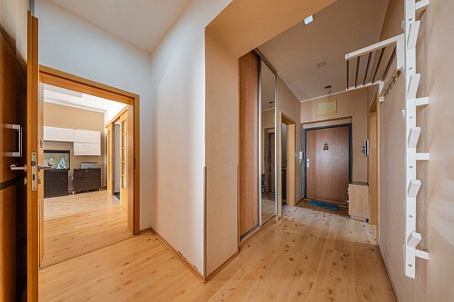 Byt vznikl propojením dvou jednotek o dispozici 2+1 a v současné době tvoří jeden celek. V případě potřeby je možné opět rozdělit na dvě samostatné bytové jednotky.