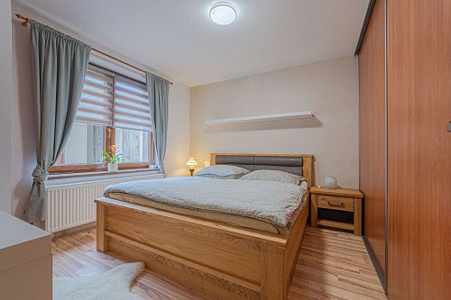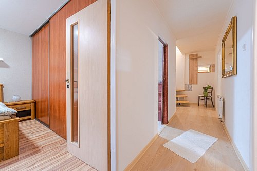 V přízemí domu se nachází vstupní chodba, prostorný obývací pokoj, kuchyň s kuchyňskou linkou a jídelním stolem, ložnice a koupelna s rohovou vanou a wc. V 1. patře se nacházejí tři samostatné pokoje a koupelna, která je připravena k dokončení podle vašich představ. Velkou výhodou je také přímý vstup na terasu se zahradou z jednoho z pokojů v patře.