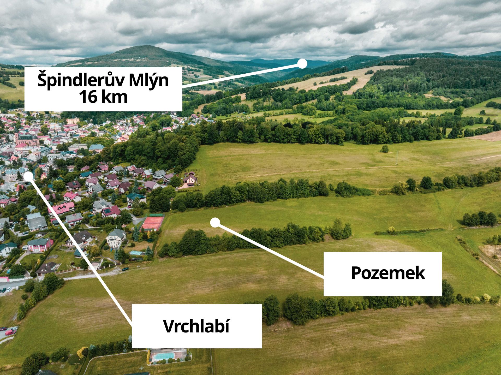 Pozemky se nacházejí v blízkosti centra Vrchlabí, což zajišťuje snadnou dostupnost veškeré občanské vybavenosti. Okolí je klidné a příjemné, s krásným výhledem na okolní přírodu. Ideální pro ty, kteří hledají kombinaci přírody a pohodlí města.