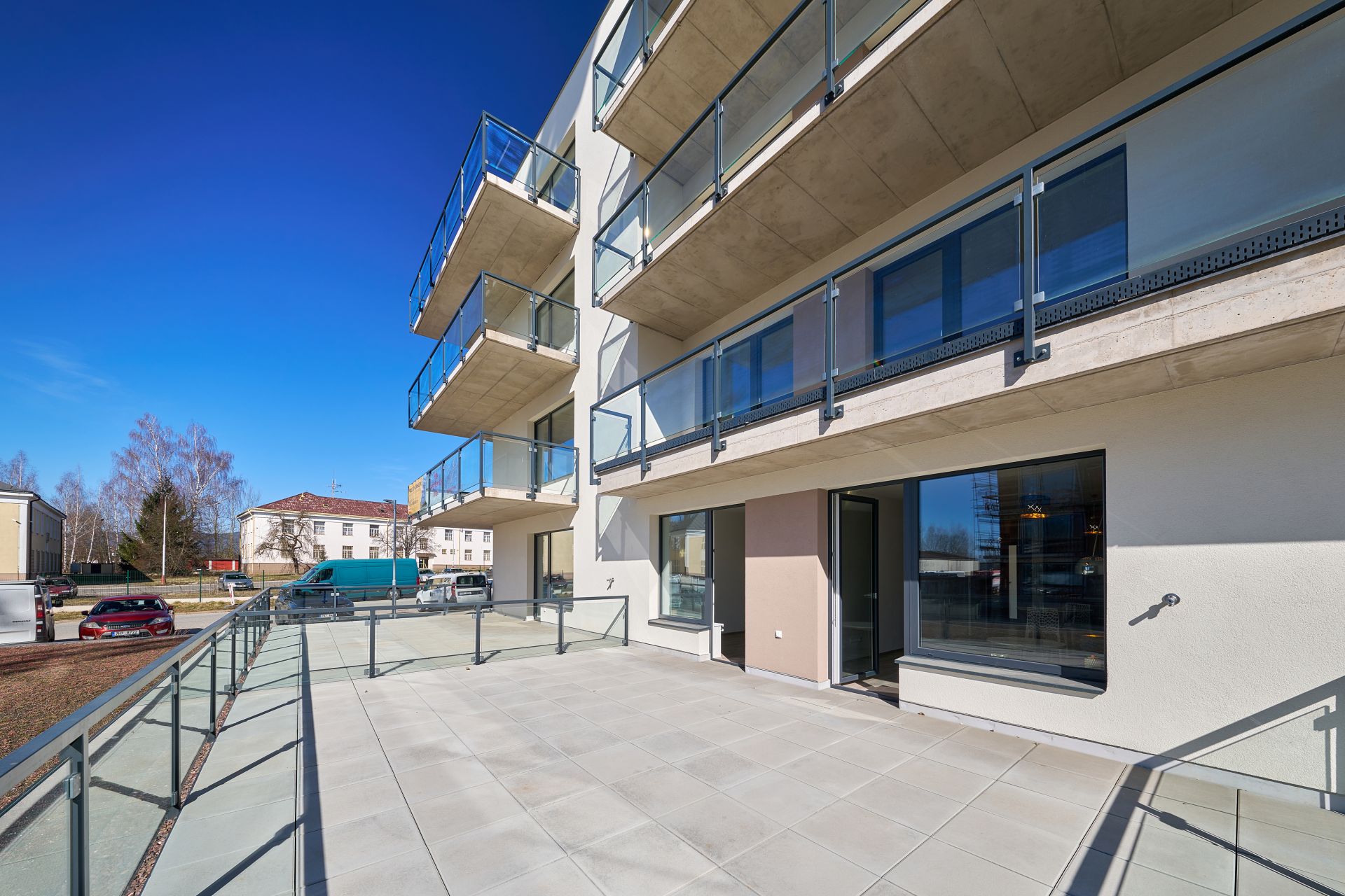 Pronájem bytu 2+kk (62,47 m2) s prostornou terasou 37 m2 a garážovým stáním.