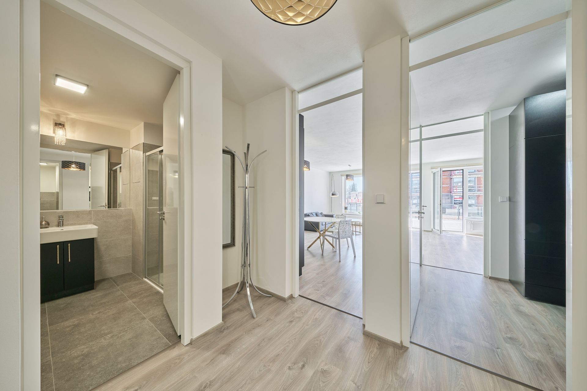 Byt je dispozice 2+kk s výměrou 62,47 m2. Dispozice místností: předsíň, obývací pokoj s kuchyňskou linkou, ložnice, terasa přístupná z obýváku i ložnice, koupelna se sprchovým koutem a wc, šatna a technická místnost. Příslušenství bytu tvoří sklep 6,33 m2 a garážové stání.